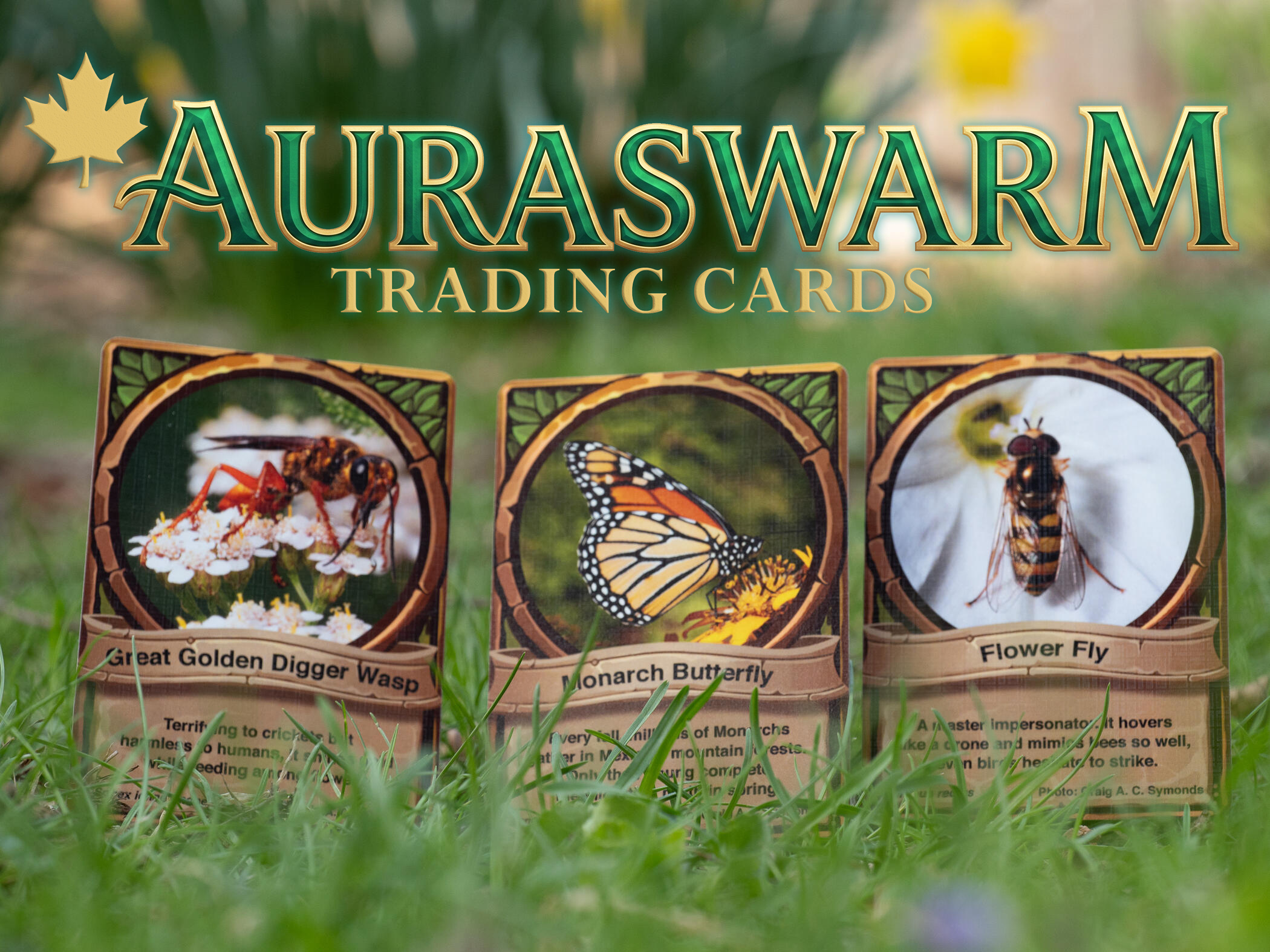 Craig Symonds received a Pollinator Outreach Grant from Pollination Guelph to develop Auraswarm Trading Cards. The cards were created to help inspire the next generation of nature enthusiasts and to spark curiosity and respect for biodiversity. Starting from an idea to create Pollinator Cards of native biodiversity in Guelph, thousands of cards were printed and are to be distributed to kids at summer camps, the City of Guelph's Healthy Landscape visit program, community events and much more. Auraswarm Trading Cards are printed on high-quality cardstock with the same premium feel that is used in the world's biggest trading card games, making them perfect for fans of popular TCGs.Sets of 18 unique Auraswarm Trading Cards are presently available for order via TheGameCrafter.